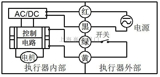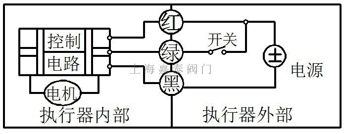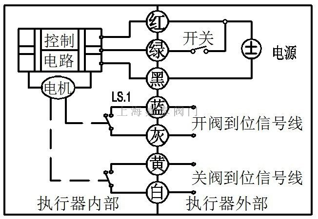 2、當(dāng)綠線開(kāi)關(guān)閉合,閥門(mén)打開(kāi),到位后執(zhí)行器內(nèi)部自動(dòng)斷電。