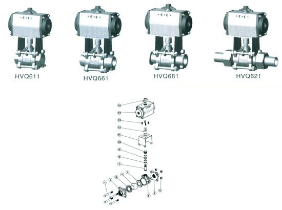 氣動(dòng)三塊式內(nèi)螺紋、焊接、卡箍、接管焊接球閥(閥座F、N、P)壓力PN16-64