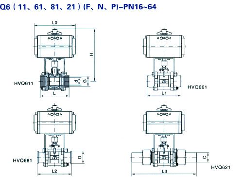 主要外形及連接尺寸AQ6(11、61、81、21)(F、N、P)-16-64