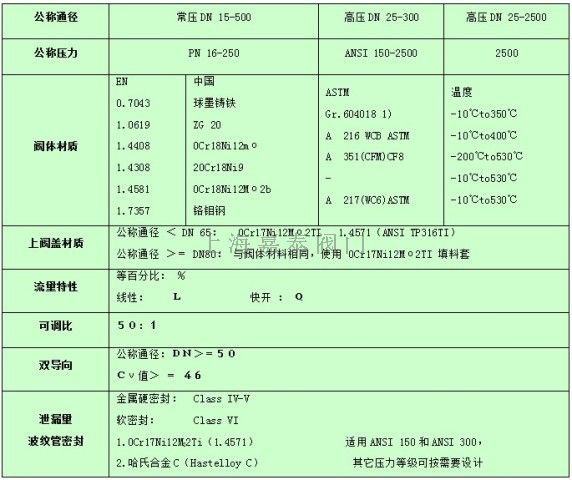 通 用 性:閥體按美標ANSI及德標DIN設(shè)計,流量特性符合IEC534-2標準,定位器安裝符合DIN IEC534T6標準。