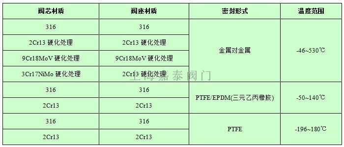 閥內(nèi)件標準材質(zhì)組合及使用溫度、壓力范圍