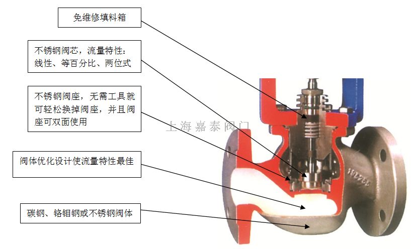金屬閥座結(jié)合快速更換閥芯與低噪音籠子,有較強的抗噪音能力和抗氣蝕能力。由于它的結(jié)構(gòu)對稱性,所以產(chǎn)生加工容易快捷。
